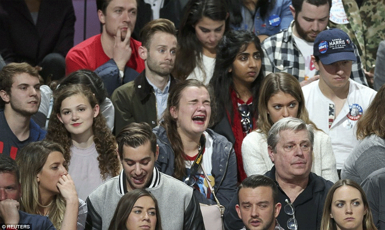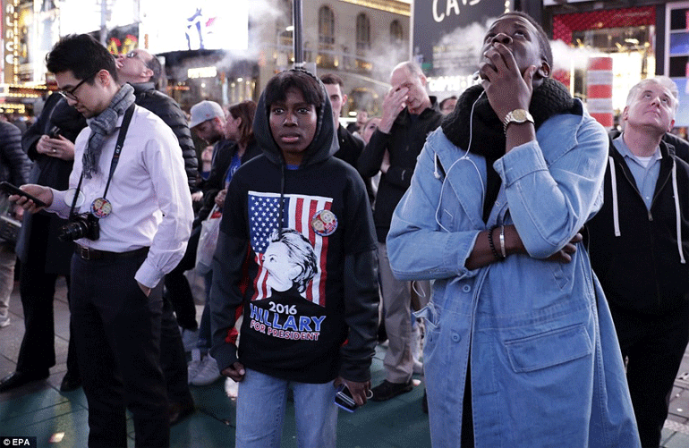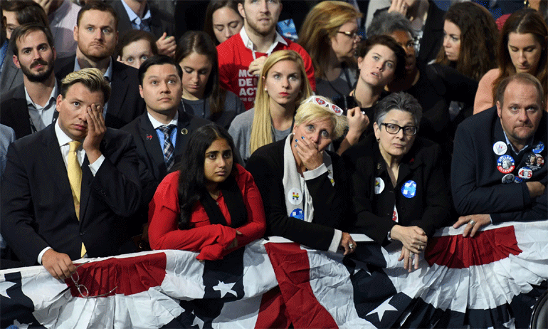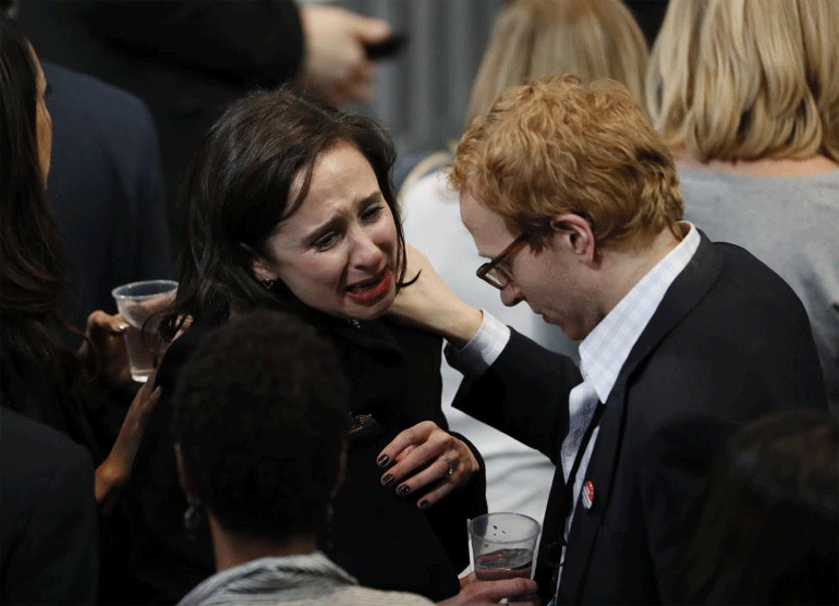 Απογοήτευση, δάκρυα και έντονη δυσαρέσκεια αποτυπώνεται με τον πιο ευφάνταστο τρόπο στα πρόσωπα των υποστηρικτών της Χίλαρι Κλιντον, στις εικόνες που μεταδίδουν τα διεθνή πρακτορεία ειδήσεων οι οποίες μιλούν από μόνες τους…