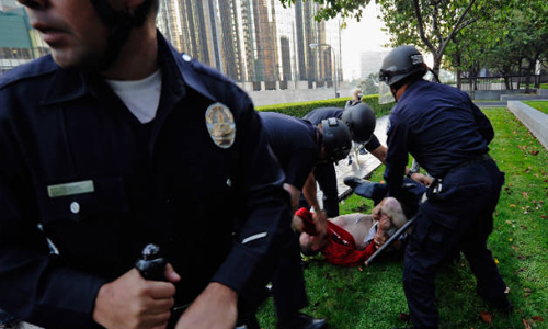 Στη δυτική ακτή, η Αστυνομία εκκένωσε ένα καταυλισμό διαδηλωτών και προχώρησε σε περίπου 20 συλλήψεις στο Λος Αντζελες. Στην Πανεπιστημιούπολη του Μπέρκλεϊ, κοντά στο Σαν Φρανσίσκο, οι δυνάμεις της Αστυνομίας αφαίρεσαν περίπου 20 σκηνές ενώ βορειότερα, στο Όρεγκον, συνελήφθησαν 34 άνθρωποι.