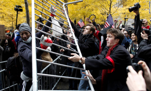 Απο νωρίς το πρωί της Πέμπτης, χιλιάδες άνθρωποι ξεκίνησαν πορεία διαμαρτυρίας στους δρόμους γύρω από τη Wall Street πριν καταλήξουν το μεσημέρι μέσα σε κεντρικούς σταθμούς του υπόγειου σιδηροδρόμου της πόλης.