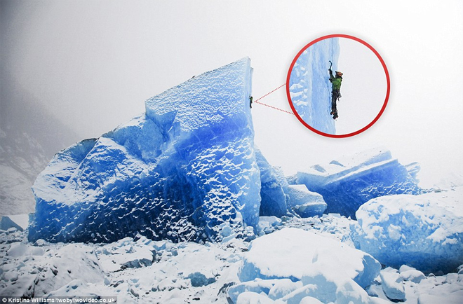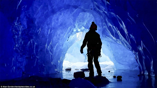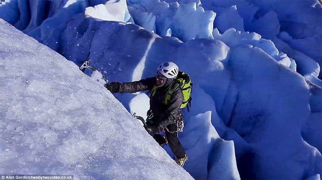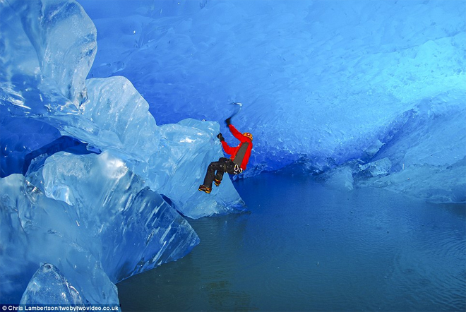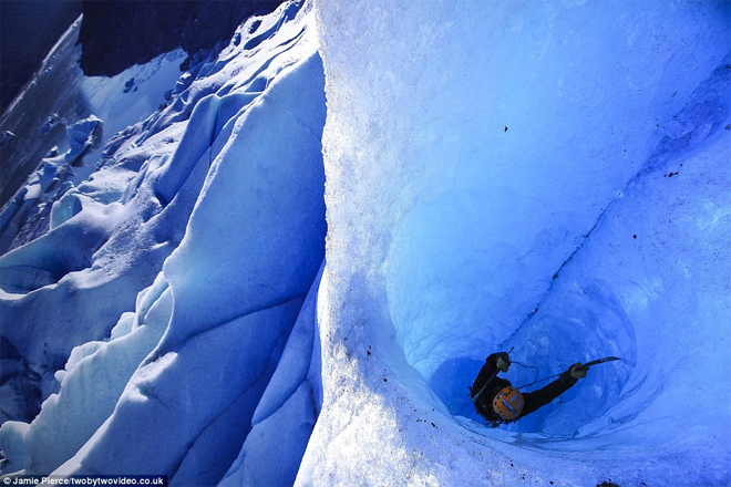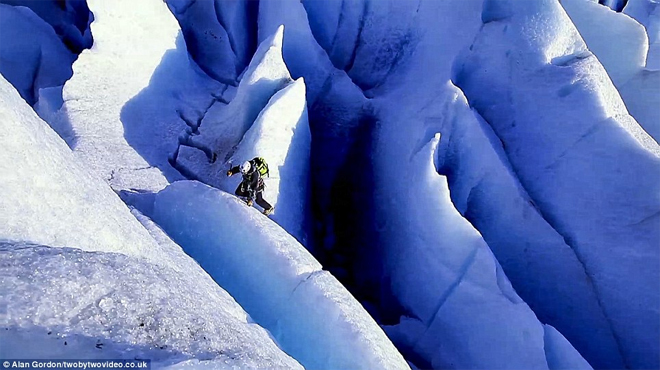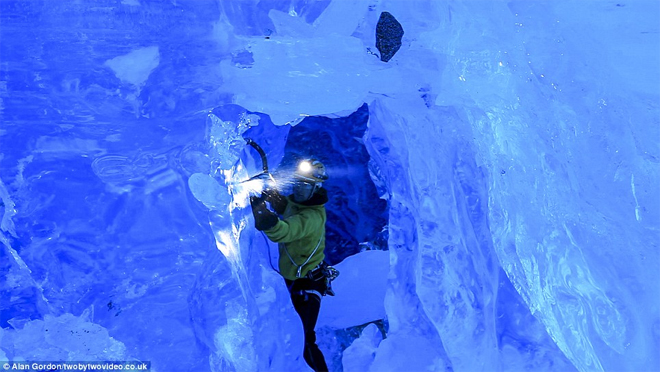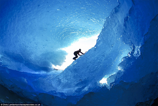 Εκπληκτικές εικόνες στο φωτεινό μπλε των πάγων, και απίστευτα πλάνα που δείχνουν ορειβάτες με κίνδυνο τη ζωή τους στο εσωτερικό τεράστιων παγετώνων.