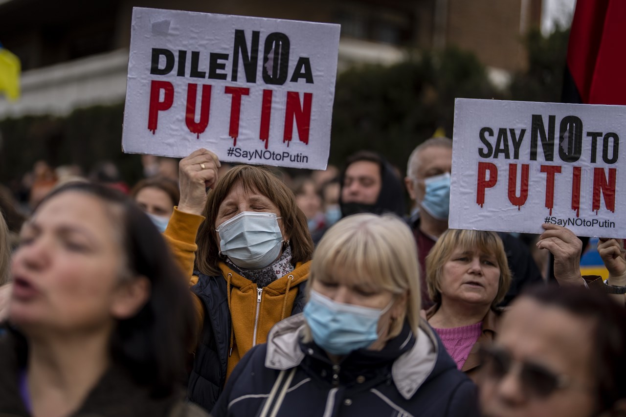 «Η οικογένειά μου βρίσκεται στο Κίεβο και επιτίθενται εναντίον του Κιέβου σήμερα. Δεν ξέρω τι να κάνω, τους τηλεφωνώ κάθε 10-15 λεπτά», είπε μια διαδηλώτρια, η Βικτόρια.