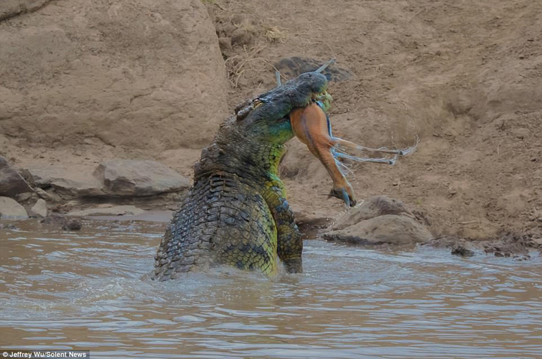 Γιγαντιαίος κροκόδειλος κατασπάραξε γαζέλα την ώρα που έμπαινε στο ποτάμι να πιει νερό στο κέντρο διατήρησης ειδών άγριας πανίδας, Kenya’s Masai Mara National Reserve.