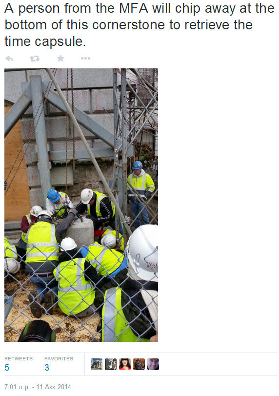Μία ανεκτίμητης ιστορικής αξίας κάψουλα χρόνου, την οποία «έχτισαν» το 1975 σε έναν τοίχο του κτηρίου της Βουλής της Μασαχουσέτης δύο αγωνιστές της εποχής, ήρθε στο φως το πρωί της Πέμπτης.