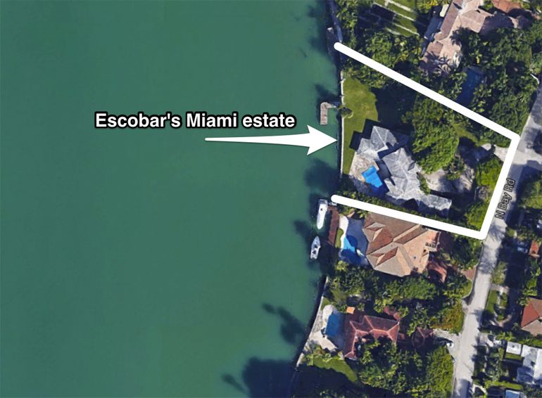 Η συγκεκριμένη έπαυλη στο Μαϊάμι είχε αγοραστεί από τον Εσκομπάρ τον Μάρτιο του 1980 έναντι 762.500 δολαρίων. Η αμερικανική κυβέρνηση προχώρησε σε κατάσχεσή της το 1987 και τρία χρόνια αργότερα η βίλα πέρασε στα χέρια ιδιώτη. Είχε τέσσερις κρεβατοκάμαρες, έξι μπάνια, πισίνα και γκαράζ, ενώ παρέμενε σε αχρηστία έπειτα από τις σοβαρές ζημιές που προκλήθηκαν σε αυτήν από πυρκαγιά.