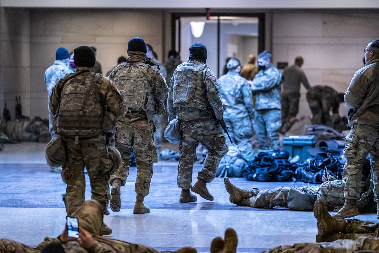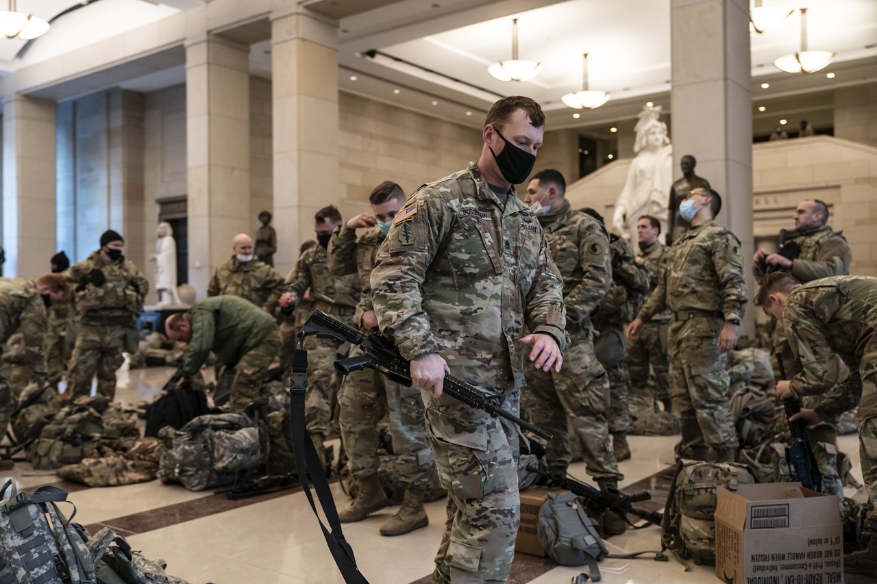 Μέλη της Εθνοφυλακής λαμβάνουν τα όπλα τους έξω από το Καπιτώλιο: