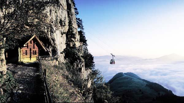 Ένα ξύλινο σαλέ δημιουργήθηκε πάνω στα απότομα βράχια, προσφέροντας διαμονή πολλών αστέρων λόγω θέσης και -κυρίως- θέας. Αυτή, άλλωστε, είναι που το κάνει διάσημο τόσο εντός όσο και εκτός ελβετικών συνόρων.