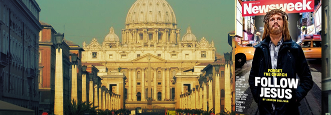 Με τον «βλάσφημο» για τα εκκλησιαστικά δεδομένα τίτλο «Ξεχάστε την Εκκλησία. Ακολουθήστε τον Ιησού», το αμερικανικό περιοδικό ξαναφέρνει στη μνήμη τα λόγια του Τόμας Τζέφερσον «Τι σημασία έχει το πώς θα κηρύξετε αυστηρά την πίστη σας σε διάφορα δόγματα, αν δεν ζείτε όπως απαιτούν τα δόγματα αυτά;». Ο Ιησούς εμφανίζεται να φορά μοντέρνα και ακριβά ρούχα…