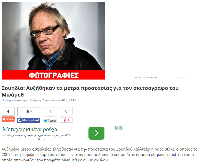 Ο Λαρς Βιλκς γνωρίζει πολύ καλά πώς είναι να βρίσκεται κανείς στο στόχαστρο των τζιχαντιστών. Από την εποχή που είχε δημοσιεύσει σκίτσα με τον προφήτη Μωάμεθ, το 2007, προκαλώντας την οργή φανατικών μουσουλμάνων, ανά τακτά χρονικά διαστήματα δεχόταν απειλές για τη ζωή του.
