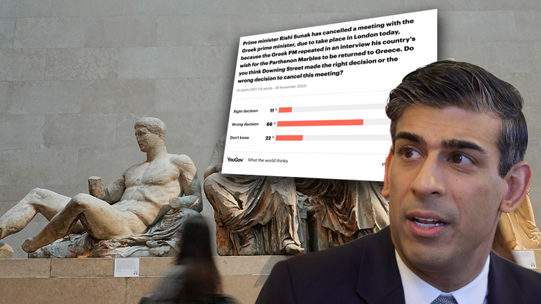 «Ο πρωθυπουργός Ρίσι Σουνάκ ακύρωσε συνάντηση με τον Έλληνα πρωθυπουργό, που επρόκειτο να πραγματοποιηθεί σήμερα στο Λονδίνο, επειδή ο Έλληνας πρωθυπουργός επανέλαβε σε συνέντευξή του την επιθυμία της χώρας του να επιστραφούν τα Γλυπτά του Παρθενώνα στην Ελλάδα. Πιστεύετε ότι η Ντάουνινγκ Στριτ πήρε τη σωστή ή τη λανθασμένη απόφαση να ακυρώσει αυτή τη συνάντηση;».