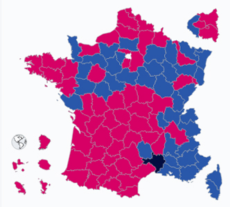 Ο εκλογικός χάρτης της Γαλλίας σύμφωνα με τα αποτελέσματα