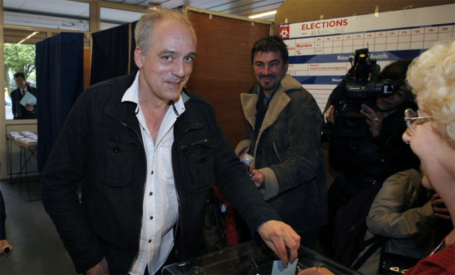 Ο υποψήφιος του κόμματος της άκρας αριστεράς NPA, Φιλίπ Πουτού, έριξε την ψήφο του γύρω στις 10.00 στην πόλη Μπορντώ: