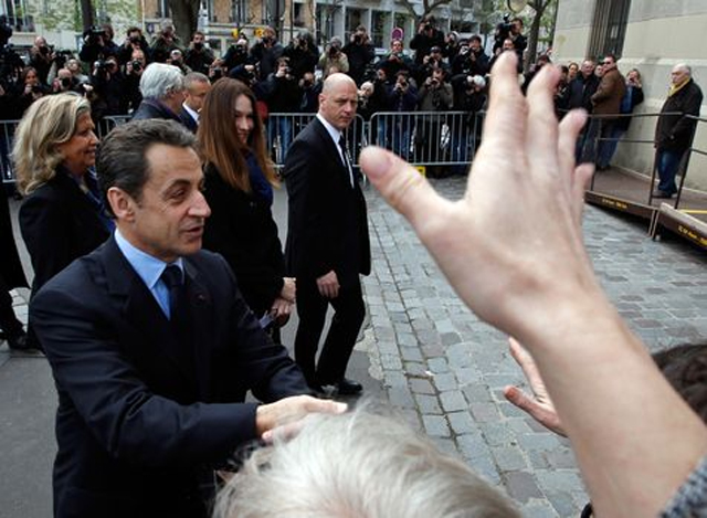 Ο Νικολά Σαρκοζί προσήλθε και ψήφισε τελευταίος, στο εκλογικό κέντρο του 16ου εκλογικού διαμερίσματος το μεσημέρι, συνοδευόμενος από τη σύζυγό του, Κάρλα Μπρούνι: