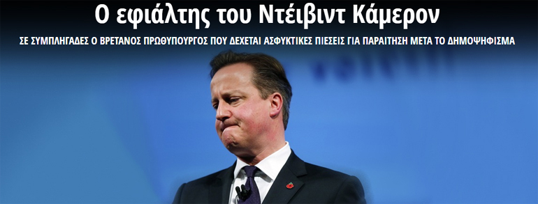 Ενδεικτικό των τρομακτικών πιέσεων που δέχτηκε ο Κάμερον είναι το γεγονός ότι ο ίδιος είχε αναφέρει πριν από τη διεξαγωγή του δημοψηφίσματος πως δεν πρόκειται να παραιτηθεί.