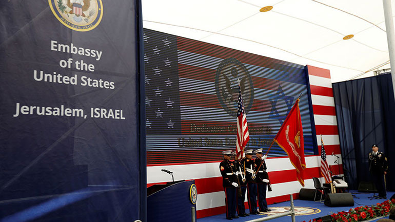 Οι αξιωματούχοι των ΗΠΑ και του Ισραήλ βρέθηκαν σε ένα κτηριακό συγκρότημα που φυλασσόταν από ισχυρές στρατιωτικές και αστυνομικές δυνάμεις, κατά τη διάρκεια της τελετής με την οποία εγκαινιάστηκε η νέα αμερικανική πρεσβεία, έπειτα από την απόφαση του Ντόναλντ Τραμπ να μετακομίσει η διπλωματική αποστολή από το Τελ Αβίβ.