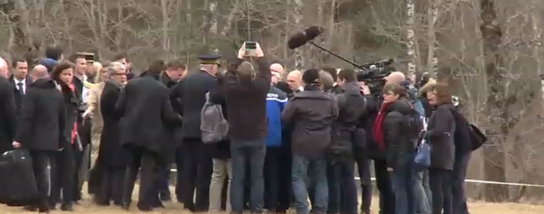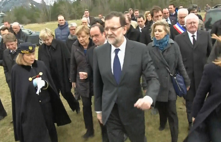 Ο Ισπανός πρωθυπουργός Μαριάνο Ραχόι τους συνάντησε στο χωριό Σεν-λεζ-Αλπ, όπου οι Γάλλοι ερευνητές έχουν στήσει το αρχηγείο τους, κοντά στο σημείο της συντριβής.