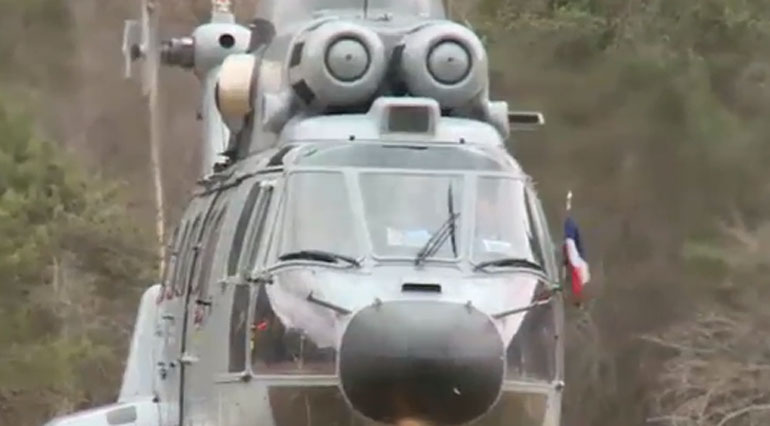 Μέρκελ και Ολάντ στο ελικόπτερο λίγο πριν από την προσγείωσή του στο σημείο των ερευνών