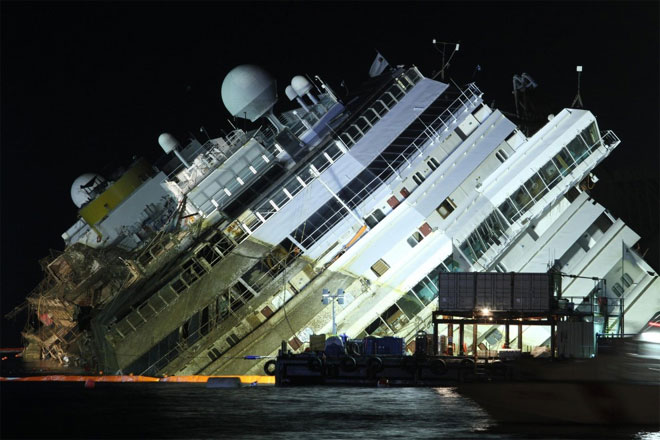 Το Costa – Concordia με κλίση 13 μοιρών.