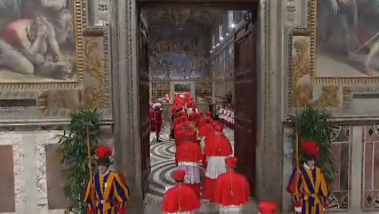 Στις 17.30 – ώρα Ελλάδος, οι 115 καρδινάλιοι ξεκίνησαν τις διαδικασίες του κονκλαβίου. Στις 18.30 έκλεισαν οι πόρτες της Καπέλα Σιξτίνα.
