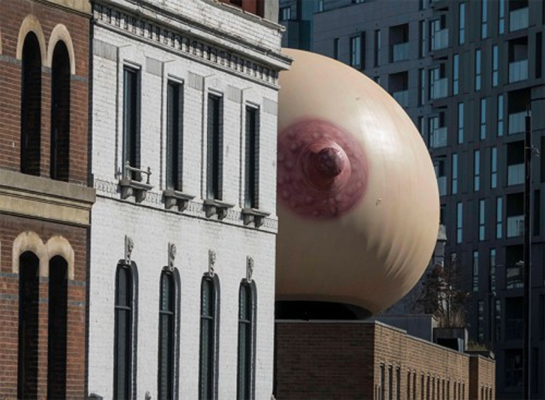 Με το δικό της τρόπο τιμά η Μεγάλη Βρετανία τη μητρότητα. Εκτός από τις εκδηλώσεις τις οποίες πραγματοποιήθηκαν ένα δημιουργικό γραφείο μαγνήτισε τα βλέμματα των περαστικών καθώς κρέμασε ένα τεράστιο στήθος σε ταράτσα που βρίσκεται στο Shoreditch.