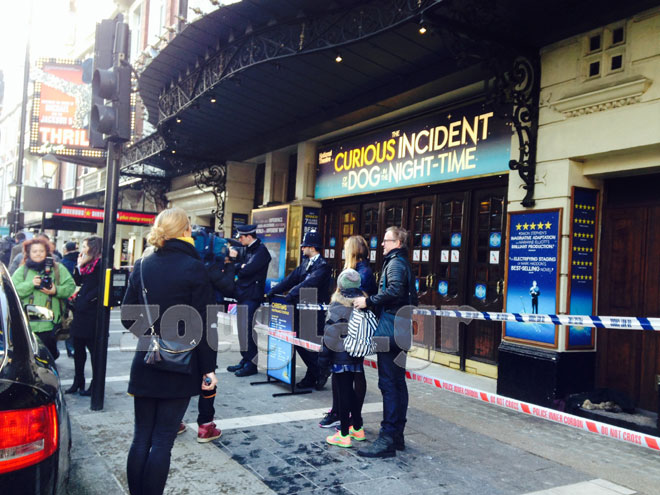 Σήμερα, το πρωί, πλήθος δημοσιογράφων έχουν σπεύσει στη λεωφόρο Shaftesbury, όπου βρίσκεται το θέατρο, προκειμένου να συλλέξουν πληροφορίες για το περιστατικό. Η είσοδος έχει αποκλειστεί από την αστυνομία και δεν επιτρέπεται ούτε στα τηλεοπτικά συνεργεία και τους φωτορεπόρτερ να τραβήξουν εικόνες από τον τόπο της παρολίγον τραγωδίας.