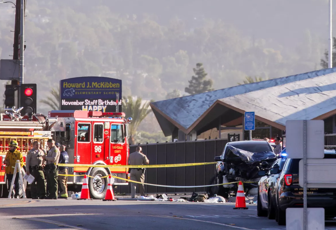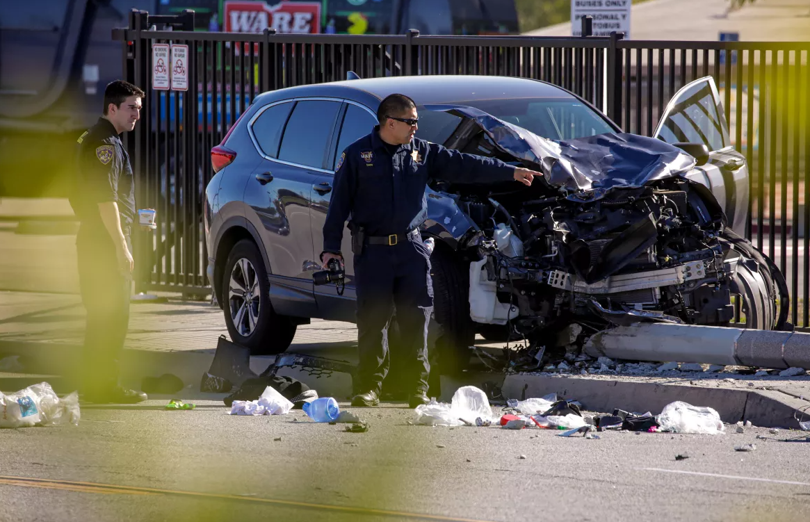 Πλάνα και φωτογραφίες από τον τόπο του ατυχήματος δείχνουν το μαύρο SUV πάνω σε πεζοδρόμιο με το μπροστινό του τμήμα διαλυμένο. Η πυροσβεστική επιβεβαίωσε πως βρισκόταν στο αντίθετο ρεύμα κυκλοφορίας όταν χτύπησε τους εκπαιδευόμενους αστυνομικούς, σύμφωνα με την εφημερίδα Los Angeles Times.