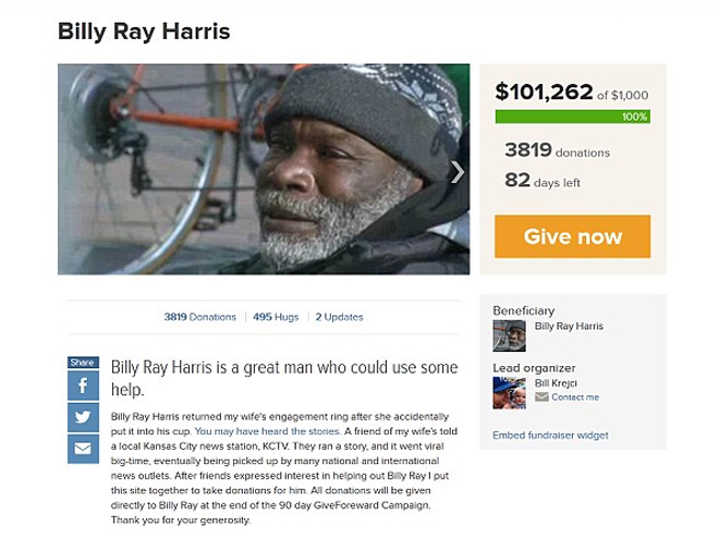 Μια Αμερικανίδα από το Κάνσας Σίτι του Μισούρι ίδρυσε φιλανθρωπικό ταμείο προς τιμήν ενός ζητιάνου, ο οποίος της επέστρεψε το διαμαντένιο δαχτυλίδι που εκείνη είχε χάσει.