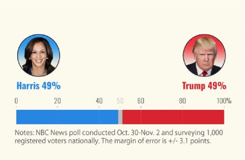 Απόλυτη ισοπαλία μεταξύ Χάρις και Τραμπ δείχνει τελική δημοσκόπηση του NBC