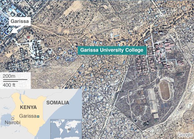 Περίπου 10 μασκοφόροι άνδρες της οργάνωσης που συνδέεται με την Αλ Κάιντα άνοιξαν πυρ αδιακρίτως, στις 05.00 τα ξημερώματα, στο πανεπιστήμιο της πόλης Γκαρίσα, στη βορειοανατολική Κένυα, κοντά στα σύνορα με τη Σομαλία.