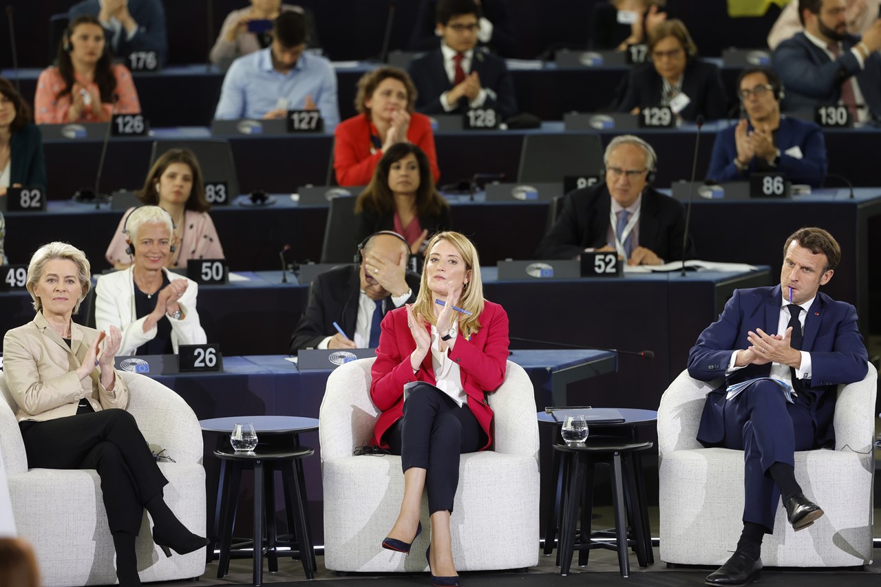 Τη δημιουργία μιας ευρωπαϊκής πολιτικής κοινότητας, η οποία θα επιτρέψει στα δημοκρατικά έθνη της Ευρώπης να βρουν ένα νέο πλαίσιο πολιτικής συνεργασίας και ασφάλειας, πρότεινε ο Γάλλος Πρόεδρος, Εμανουέλ Μακρόν, μιλώντας στην τελετή λήξης της Διάσκεψης για το Μέλλον της Ευρώπης στο Ευρωπαϊκό Κοινοβούλιο στο Στρασβούργο.