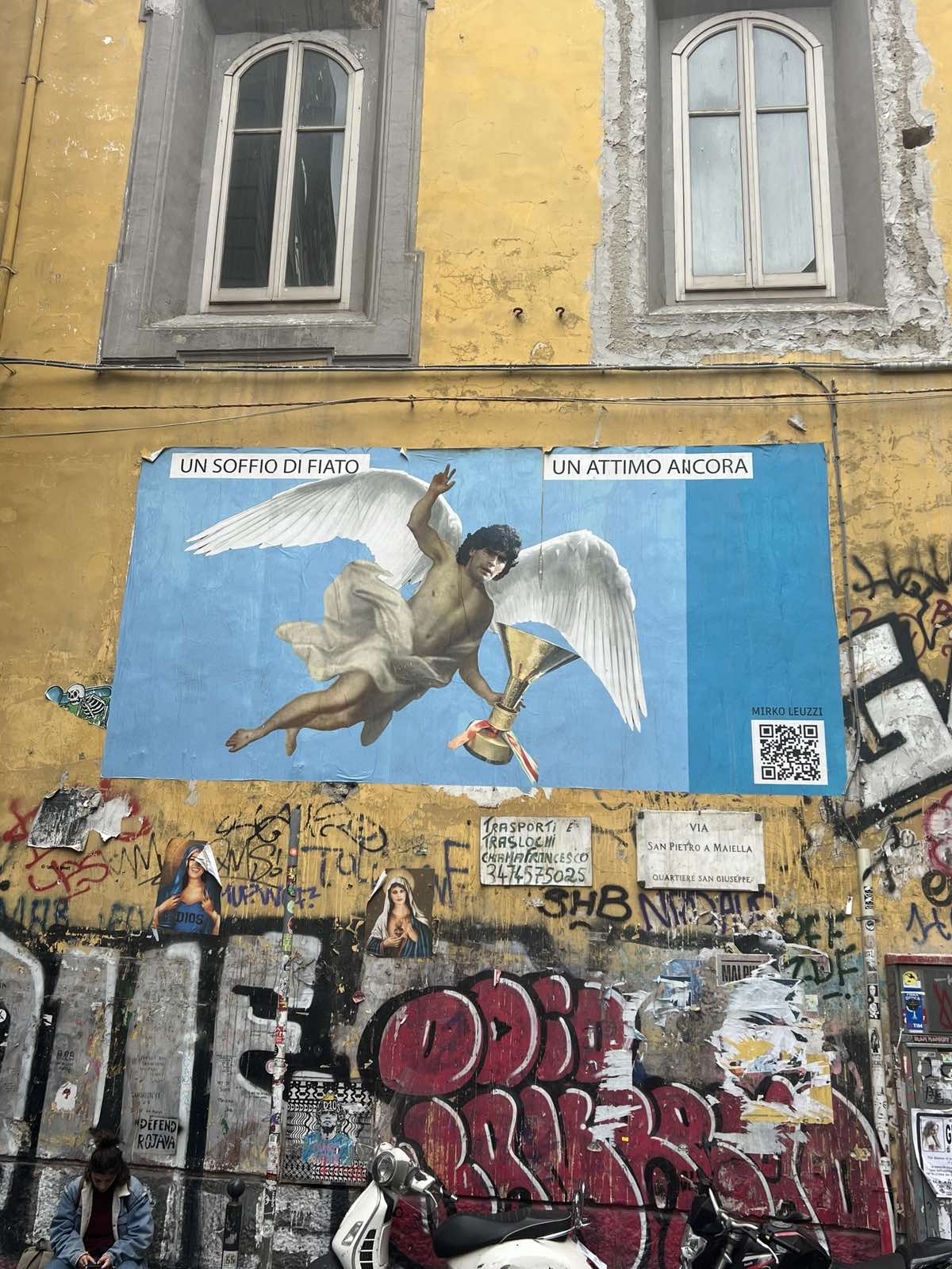 Ανεξίτηλα χαραγμένος στην ιστορία και την κουλούρα της Νάπολι, ο Ντιέγκο Μαραντόνα, εξακολουθεί έως και σήμερα να λατρεύεται σαν Θεός από τους κατοίκους της. Σχεδόν σε κάθε στενό της πόλης θα συναντήσεις και από μια προσωπογραφία του, ένα σύνθημα γραμμένο γι’ αυτόν αλλά και αναμνηστικά που φέρουν το πρόσωπό του.