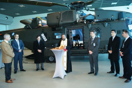 Την Τρίτη τελέστηκε η ακολουθία του αγιασμού στο πρώτο υπό παραλαβή ελικόπτερο ΝΗ90 Ειδικών Επιχειρήσεων (SOH) του Ελληνικού Στρατού Ξηράς ΕΣ 891, στις εγκαταστάσεις του εργοστασίου της Airbus Helicopters στο Marignane της Μασσαλίας, από τον αρχιερατικό επίτροπο Μασσαλίας Ιωαννίκιο Αθανασιάδη.