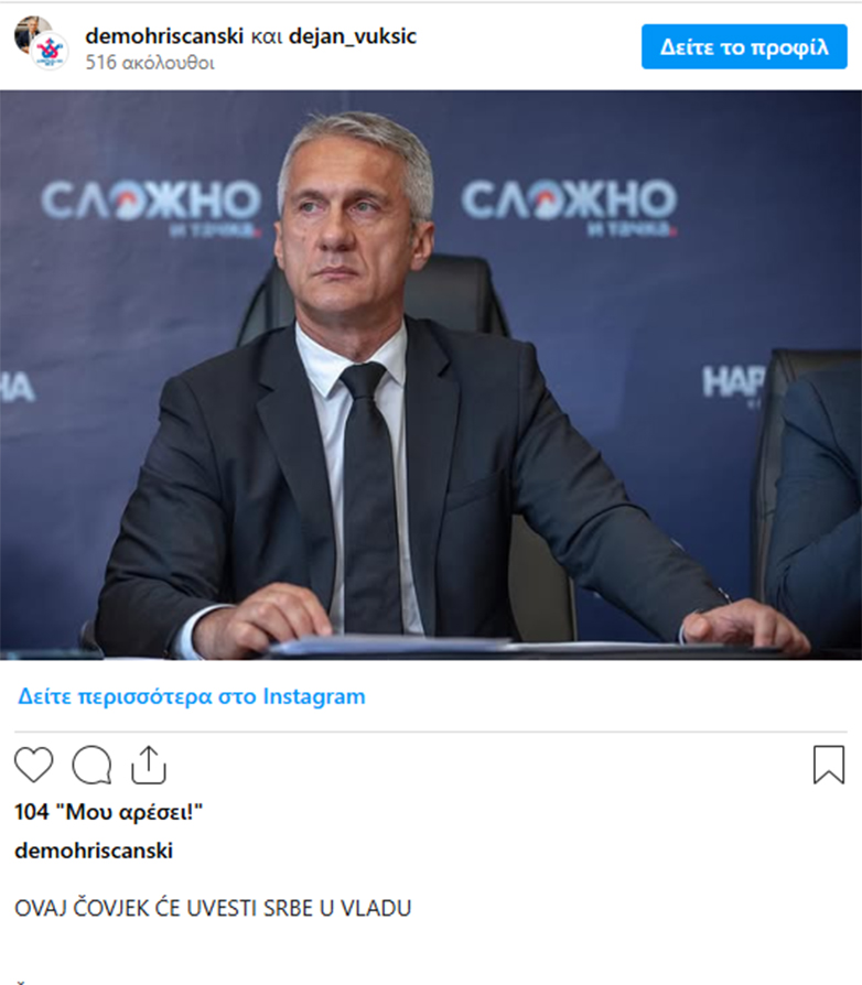 η Μιριάνα Πάικοβιτς, γενική διευθύντρια για την Προώθηση και Προστασία των Ανθρωπίνων Δικαιωμάτων στο Υπουργείο Ανθρωπίνων και Μειονοτικών Δικαιωμάτων και ο Ντέγιαν Βούκσιτς, πρώην διευθυντής της Εθνικής Υπηρεσίας Ασφαλείας (ANB) και σύμβουλος του Προέδρου Γιακόβ Μιλάτοβιτς.