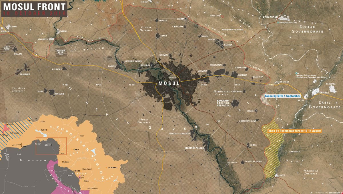 Οι τζιχαντιστές, που υπολογίζονται πως δεν ξεπερνούν τους 5.000, έχουν περικυκλωθεί από πολύ υπέρτερες δυνάμεις, αλλά το γεγονός ότι είναι οχυρωμένοι σε κατοικημένη περιοχή καθιστά την επιχείρηση εξαιρετικά επικίνδυνη για τους πολίτες. Ο ΟΗΕ έχει προειδοποιήσει για το ενδεχόμενο περίπου ένα εκατομμύριο κάτοικοι να αναγκαστούν να εγκαταλείψουν τις εστίες τους σε περίπτωση που η επιχείρηση χρονοτριβήσει.