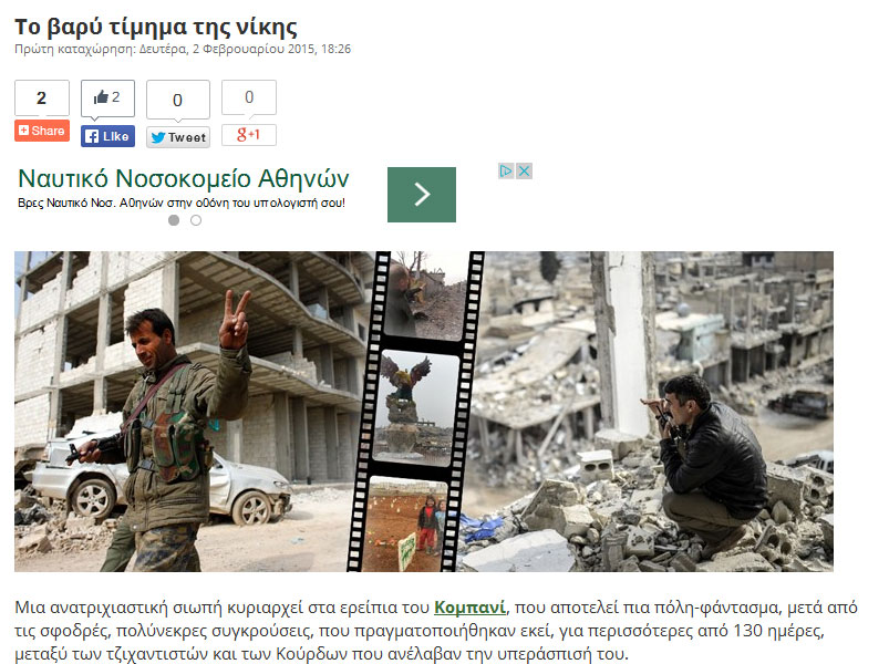 Σύμφωνα με τα όσα μετέδωσε το RT, ο Διεθνής Συνασπισμός που μάχεται το Ισλαμικό Χαλιφάτο και του οποίου ηγούνται οι ΗΠΑ, πραγματοποίησε μέσα στο Σαββατοκύριακο 11 αεροπορικές επιδρομές στο Ιράκ και 9 στη Συρία. Ιδιαίτερη έμφαση δόθηκε στην περιοχή περιμετρικά του Κομπανί, προπύργιο των Κουρδων μαχητών Πεσμεργκά, το οποίο αποτέλεσε πεδίο πολύμηνων και σφοδρών συγκρούσεων με τους τζιχανιστές.