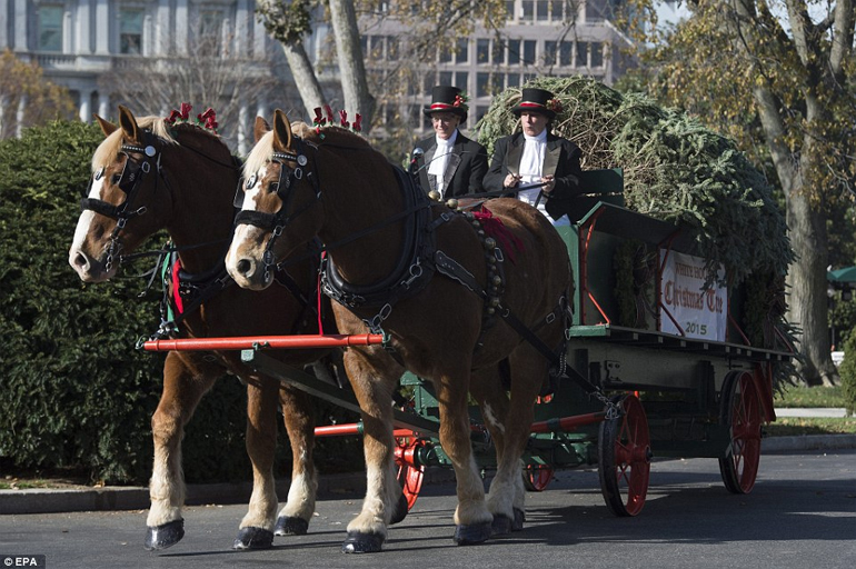 Το δέντρο, που έχει ύψος 5,64 μ. και μεγάλωσε στην Πενσυλβάνια, έφτασε στην προεδρική κατοικία με κάρο που το έσερναν δυο άλογα και το οδηγούσαν αμαξάδες με ημίψηλα καπέλα.
