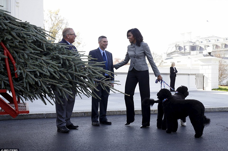 Την επίσημη έναρξη της εορταστικής περιόδου για τον Λευκό Οίκο κήρυξε η πρώτη κυρία των ΗΠΑ Μισέλ Ομπάμα χθες Παρασκευή, υποδεχόμενη το φετινό χριστουγεννιάτικο δέντρο μετά των δύο σκύλων της οικογένειας Μπο και Σάνι, αλλά και συνοδεία μπάντας του ναυτικού.