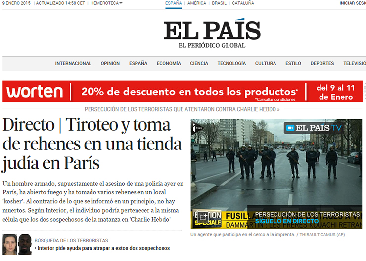 Η ισπανική El Pais αναφέρεται στη νέα ομηρία σε εβραϊκό παντοπωλείο στο Παρίσι.