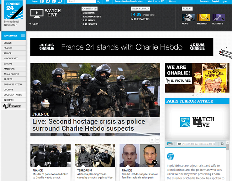 Το France 24 καλύπτει ζωντανά τα περιστατικά ομηρίας