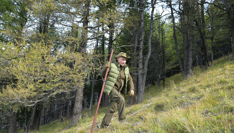 Κάποια στιγμή ο υπουργός Άμυνας άναψε φωτιά για ένα πικ-νικ στο απέραντο δάσος, ενώ συνέχισαν την πορεία τους προς την κορυφή του βουνού, από την οποία απλώνεται μια υπέροχη θέα, με τον ποταμό Γιενσέι να διακρίνεται στο βάθος. Το ύψος και η θέα εντυπωσιάζουν τον Ρώσο πρόεδρο ο οποίος δεν κρύβει τα συναισθήματα του λέγοντας: «Πόσο όμορφος είναι ο Γιενισέι από εδώ». «Είμαστε πιο ψηλά κι από τα σύννεφα) περίπου σε υψόμετρο δύο χιλιάδων μέτρων.
