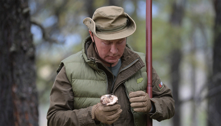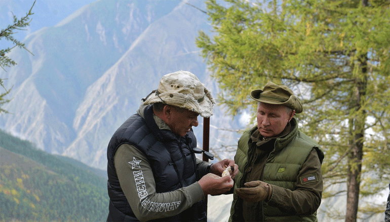 Οι φωτογραφίες δείχνουν τον Ρώσο πρόεδρο, να φοράει χακί στολή και γυαλιά ηλίου και να περπατάει στο δάσος της Σιβηρίας παρέα με τον υπουργό Άμυνας Σεργκέι Σόiγκου, να μαζεύει μανιτάρια και να κάθεται σε διάφορα σημεία απολαμβάνοντας το τοπίο.