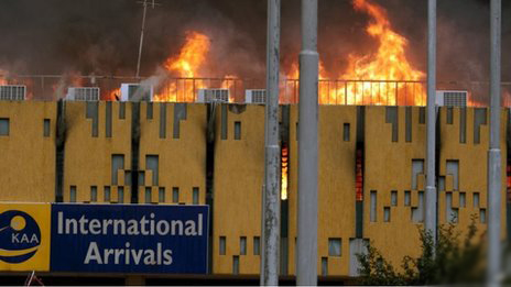 Με ένα μήνυμά του στο twitter, ο Κενυάτης υπουργός Μουτέ Ιρίνγκο έγραψε συγκεκριμένα: «Υπάρχει μια μεγάλη φωτιά στο αεροδρόμιο.Οι πτήσεις κατευθύνονται προς Μομπάσα και Ελντορέτ. Η φωτιά είναι τεράστια».