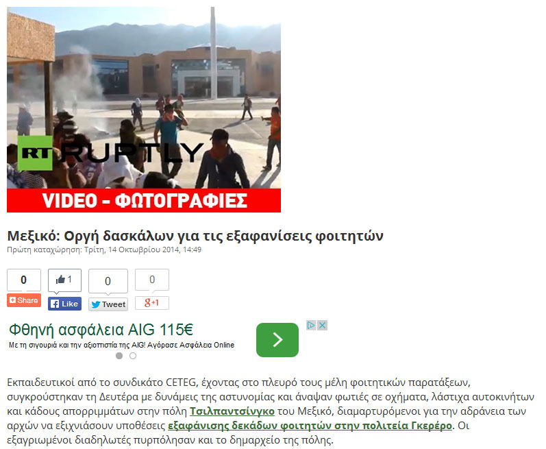 Εξαγριωμένοι διαδηλωτές προκάλεσαν μεγάλες ζημιές στο δημαρχείο του Τσιλπανσίγκο (πρωτεύουσα της πολιτείας Γκερέρο), απαιτώντας δικαιοσύνη για τους 43 φοιτητές και τους καθηγητές τους που χάθηκαν τη νύχτα της 26ης Σεπτεμβρίου του 2014 από την πόλη Ιγκουάλα. Αφού έκαναν γυαλιά καρφιά την κεντρική είσοδο, κουκουλοφόροι έριξαν στην πρόσοψη του κτηρίου φορτηγάκι, το οποίο και πυρπόλησαν στη συνέχεια. Το μένος των διαδηλωτών ήταν τέτοιο που ορισμένοι εξ αυτών πετούσαν πέτρες ακόμα και με… σφεντόνες.