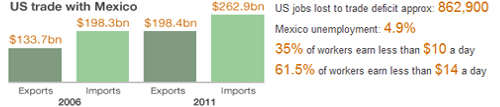 Η βελτιωμένη εικόνα στο εσωτερικό της χώρας έχει οδηγήσει σε μια ανάσχεση του μεταναστευτικού κύματος προς τις Η.Π.Α., με αρκετούς Μεξικανούς να πραγματοποιούν το ανάποδο δρομολόγιο, εγκαταλείποντας το αμερικανικό έδαφος. Σε σχέση με το 2006, τόσο οι εισαγωγές όσο και οι εξαγωγές του Μεξικού προς τις Η.Π.Α. έχουν αυξηθεί σημαντικά. Από τα 133,7 δισ. δολάρια και τα 198,3 δισ. δολάρια αντίστοιχα, το 2011 διαμορφώθηκαν στα 198,4 δισ. δολάρια και 262,9 δισ. δολάρια.
