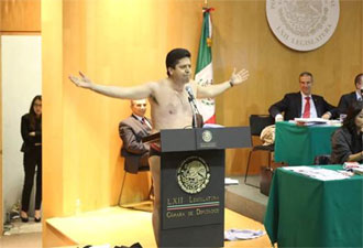 Με έναν πρωτότυπο τρόπο διαμαρτυρήθηκε για την πρόοδο των ιδιωτικοποιήσεων στον τομέα της ενέργειας στο Μεξικό ο βουλευτής Αντόνιο Κονέχο του κόμματος Δημοκρατική Επανάσταση.