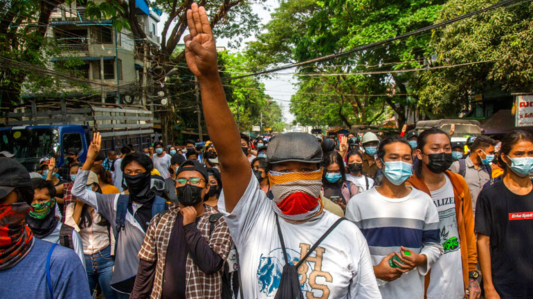 Οι διαδηλωτές κατά του στρατιωτικού πραξικοπήματος της 1ης Φεβρουαρίου βγήκαν στους δρόμους της Ρανγκούν, της Μάνταλεϊ και άλλων πόλεων, αψηφώντας την προειδοποίηση ότι μπορεί να δεχθούν πυρά «στο κεφάλι και την πλάτη» ενώ οι στρατηγοί της χώρας γιορτάζουν την Ημέρα των Ενόπλων Δυνάμεων.