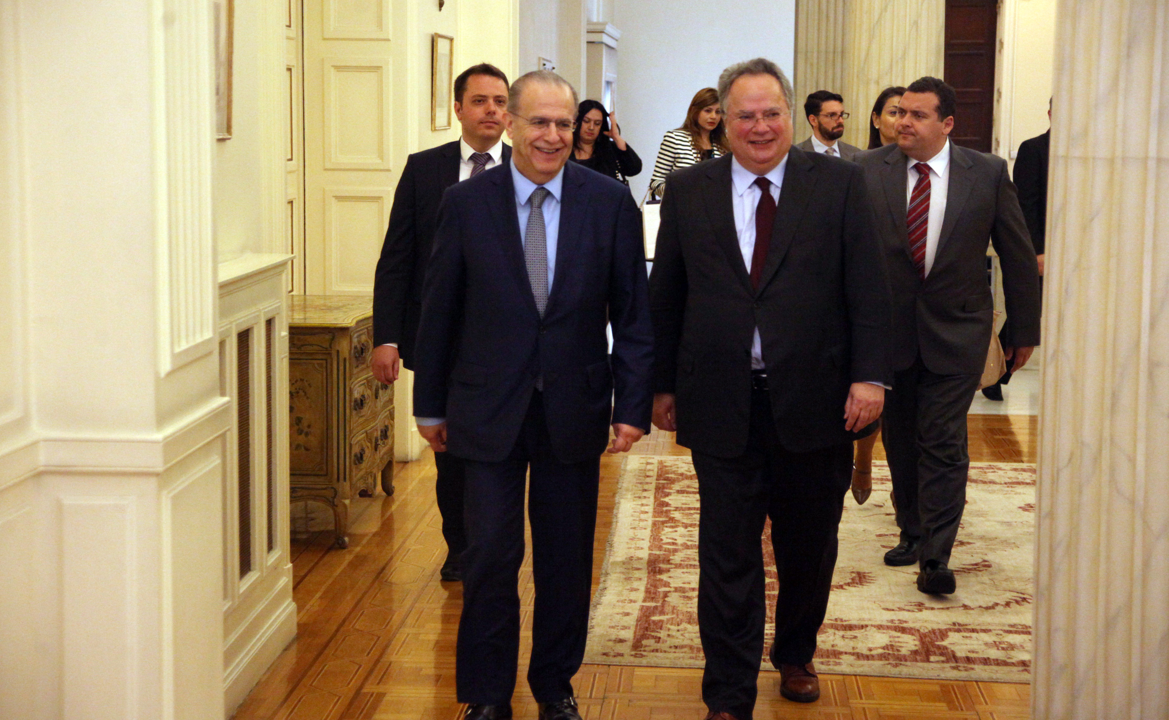 Κατά τη δίωρη συνάντησή τους στο υπουργείο Εξωτερικών -με τη συμμετοχή στη συνέχεια και διευρυμένων αντιπροσωπειών των δύο χωρών- εκφράστηκε αισιοδοξία για το κλίμα της επανέναρξης των διαπραγματεύσεων, προβληματισμός για την αστάθεια στην Τουρκία μετά το αποτέλεσμα των τουρκικών εκλογών, ενώ συζητήθηκαν θέματα της ευρύτερης περιοχής μας- Μ.Ανατολή, σχέσεις Ε.Ε.-Τουρκίας, Βαλκάνια και προώθηση τριμερών συνεργασιών με Αίγυπτο και Ισραήλ.