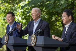 Ο πρόεδρος των ΗΠΑ Τζο Μπάιντεν φιλοξένησε χθες Παρασκευή στο Καμπ Ντέιβιντ τον πρωθυπουργό της Ιαπωνίας Φουμίο Κισίντα και τον πρόεδρο της Νότιας Κορέας Γιουν Σοκ-γελ για τριμερή σύνοδο κορυφής που χαρακτήρισε «ιστορική» και έστειλε ηχηρό μήνυμα ενότητας με αποδέκτη την Κίνα.