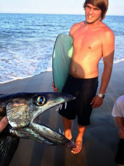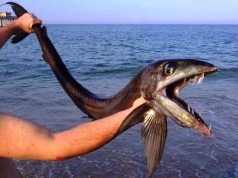 Συγκεκριμένα το ψάρι, ήταν ζωντανό όταν ξεβράστηκε στην ακτή ,είχε μεγάλο μήκος και πολύ κοφτερά δόντια.