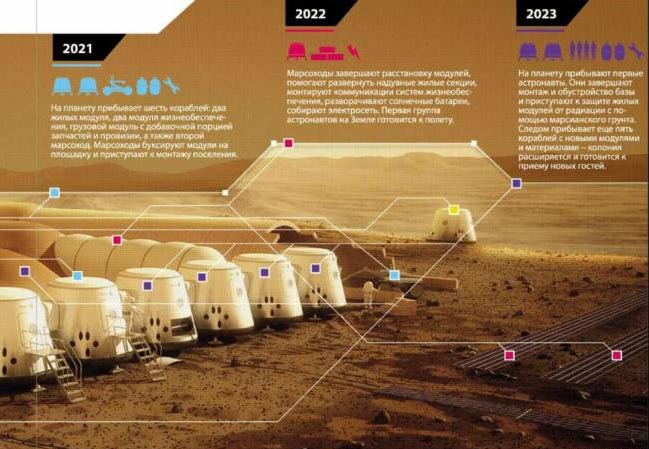 Στόχος της Mars One είναι να στείλει μέχρι το 2024 τέσσερις εθελοντές στον Άρη, μετά από ταξίδι επτά μηνών. Δεν προβλέπεται όμως να επιστρέψουν ποτέ στη Γη.