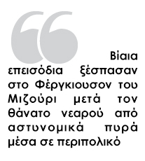 Οι βίαιες ταραχές σημειώθηκαν στο Φέργκιουσον του Μιζούρι. Ειδικότερα, για δεύτερη νύχτα η αστυνομία προχώρησε σε συλλήψεις και έκανε χρήση δακρυγόνων μετά από επεισόδια που ακολούθησαν ειρηνικές συγκεντρώσεις για την απόδοση Δικαιοσύνης.